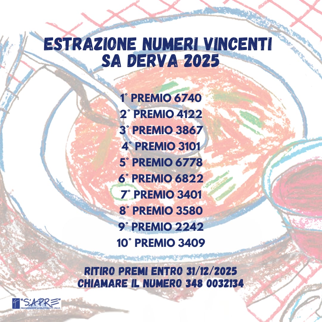 Il Sa Derva, famoso per la qualità della sua cucina, è ormai divenuto un immancabile appuntamento benefico popolare del territorio, l’evento è completamente gestito dai volontari dell’organizzazione che mettono liberamente a disposizione il proprio tempo. Gli utili dell’evento dono interamente devoluti nei progetti sostenuti da S’Apre in Italia e nel mondo.